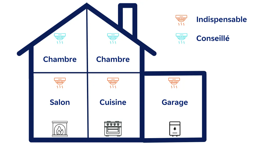 Dans les maisons à plusieurs étages, les cages d’escalier peuvent créer des colonnes verticales où le CO peut s’accumuler rapidement. Pour une protection optimale, il est conseillé d’installer un détecteur à chaque niveau, en accordant une attention particulière aux paliers d’escalier et aux couloirs menant aux chambres à coucher.