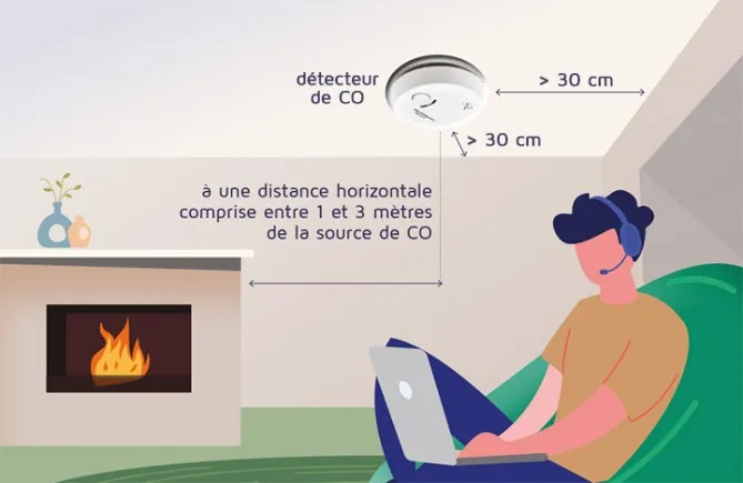 Pour une détection efficace près d’une cheminée ouverte, il est recommandé de placer le détecteur de CO à une distance d’environ 3 à 4 mètres. Cette distance offre un bon compromis entre la proximité de la source potentielle de CO et la stabilité des mesures.